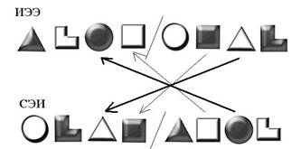 - Если соционический тип партнера известен, то нетрудно определить, какое место в модели его типа занимает выявленная функция. Проводим стрелку: «нападение» с его интуиции времени на свою (рис. 1).